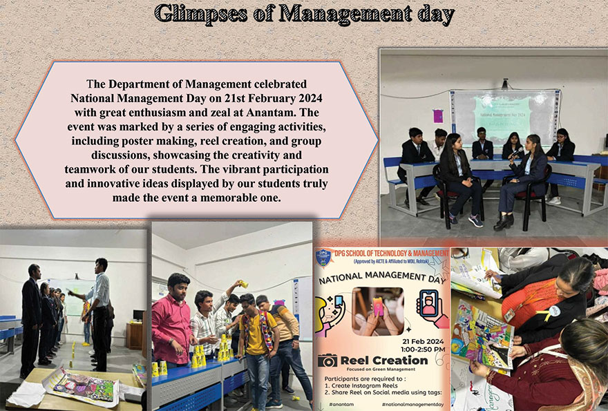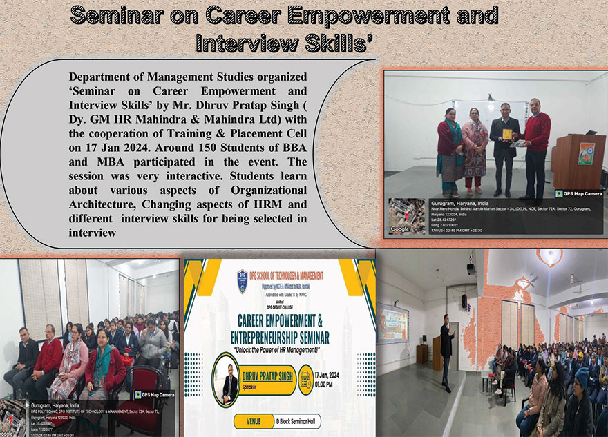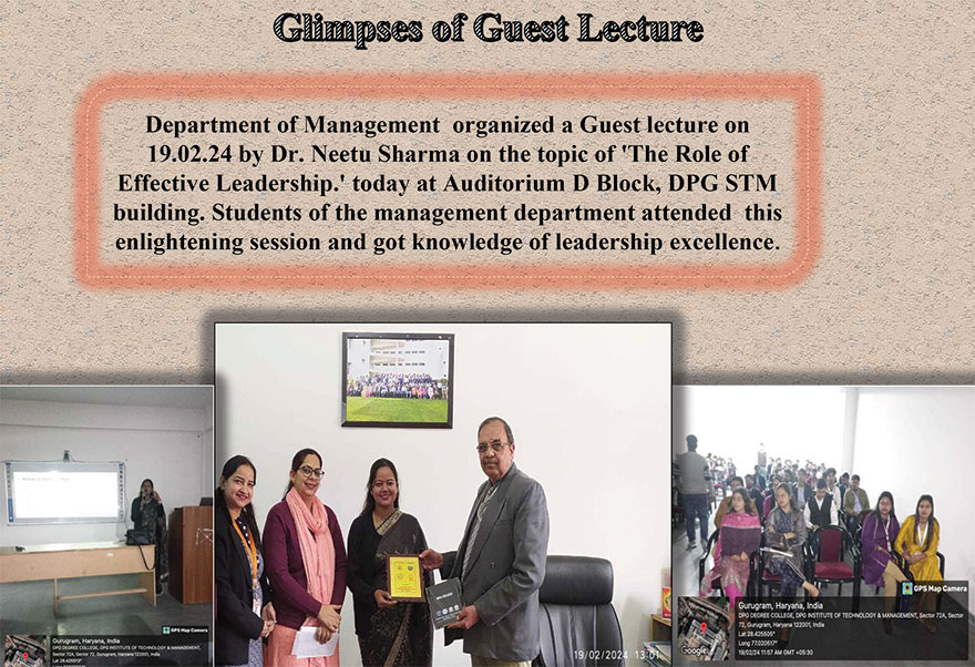 DPGSTM organized guest lecture on various field of management. Mr Anoop Garg (Senior Chartered Accountant with 20 years of successful experience in accounting, tax Consulting and Business Advisory) provided valuable insights about the scope of various specialization in MBA and leadership styles. He also shared his thoughts about personality development, data analysis , scope of MBA and online websites like Flipkart and Amazon. Further he provided insights about new challenges for finance specialists and the importance of disclosures in financial statement.