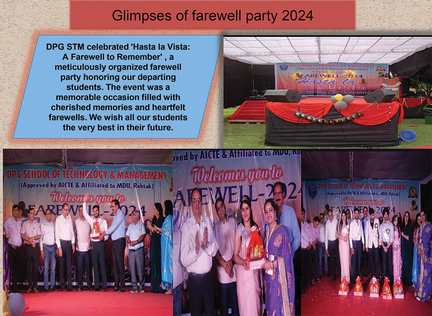 The Fresher party with the theme of “PRARAMBH 2021” was organized on 25thDecember,2021. The fresher’s day was filled with excitement, joy, music, enthusiasm, laughter and happiness. This was a memorable day in the life of every fresher of batch 2021-22. The function started with the Saraswati pooja and the lamp lightening by the Dignitaries and the fresher were formally welcomed into the DPG family, the jury and the other guests of honors were also introduced followed by the cultural activities of the freshers.